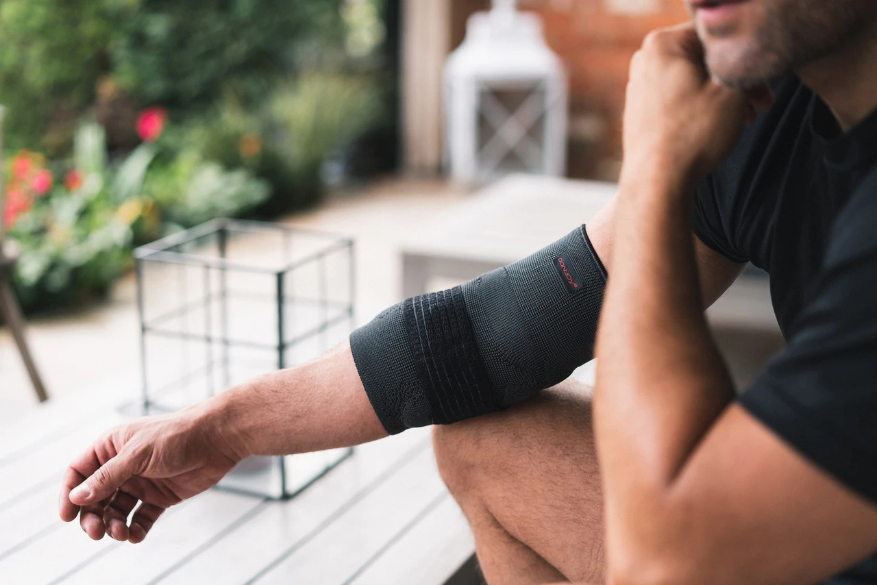 DonJoy CondiLax Elbow Support helps with support and compression for a variety of elbow issues. For use with mild elbow osteoarthritis, epicondylitis (tennis/golfer’s elbow), propioception and injury prevention.